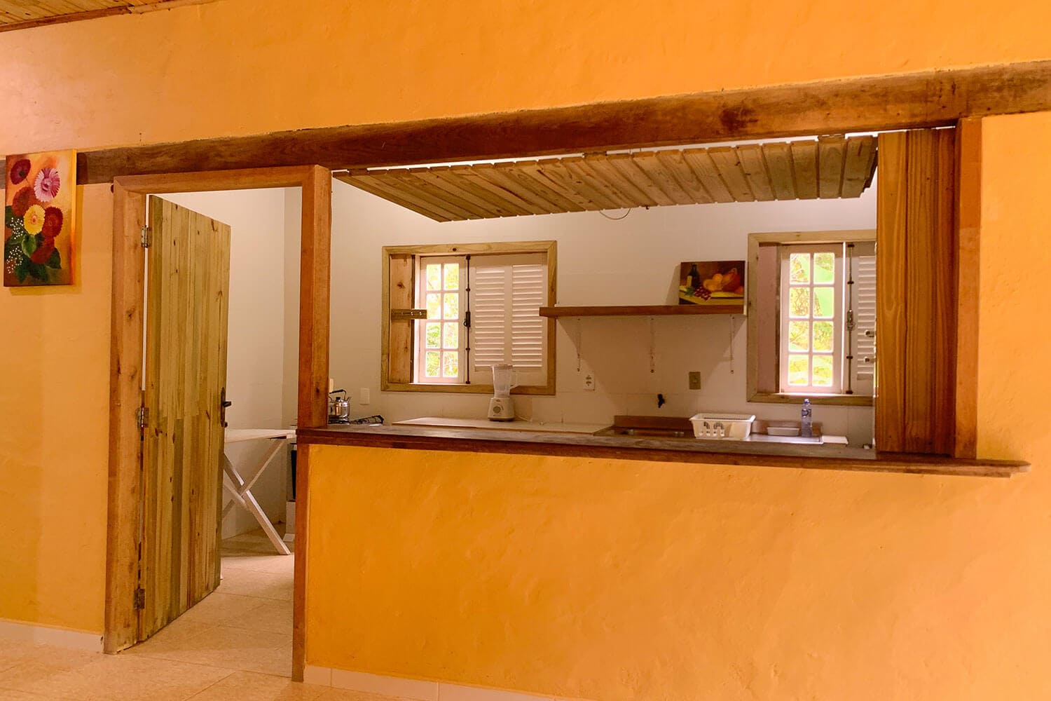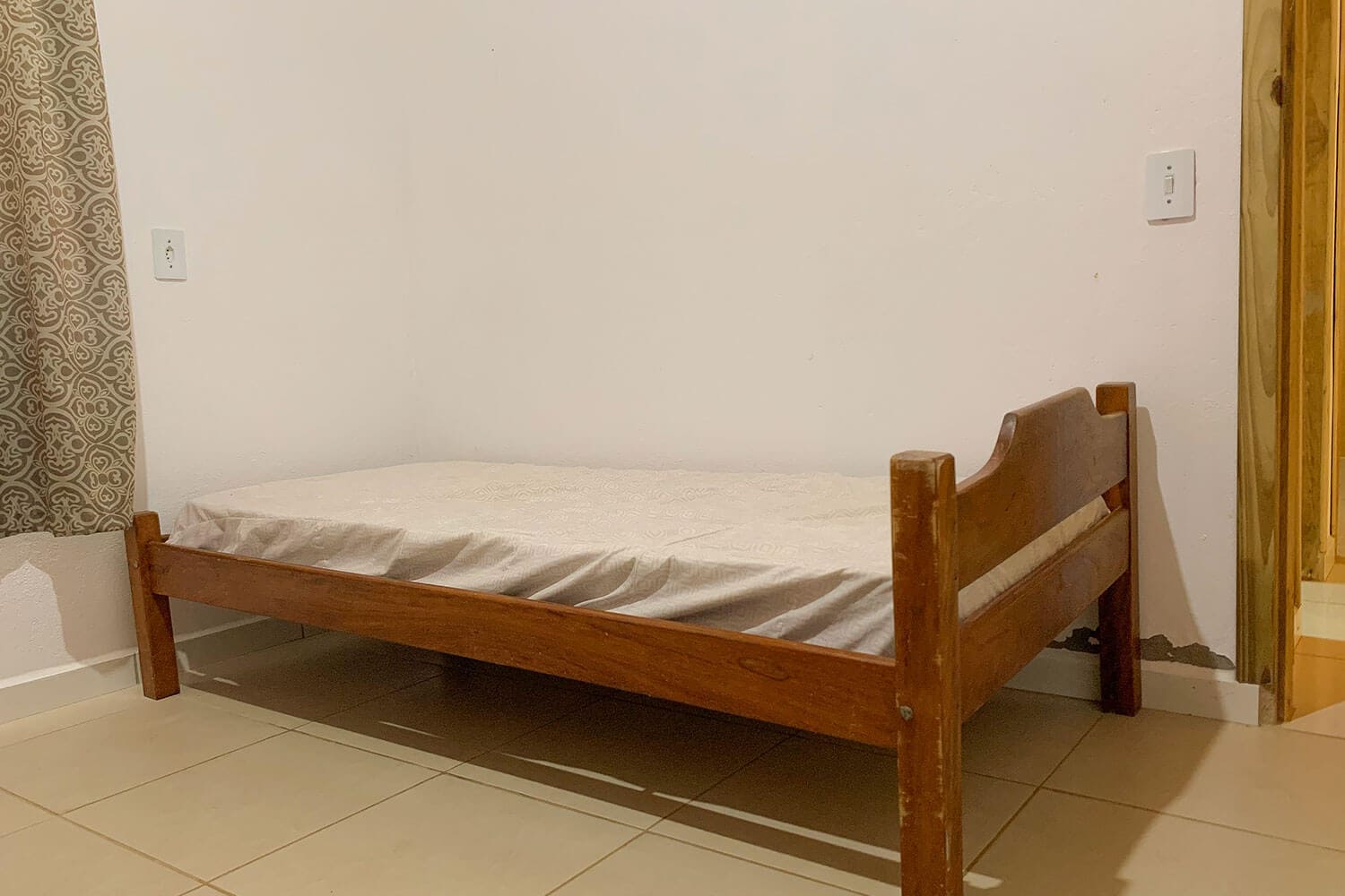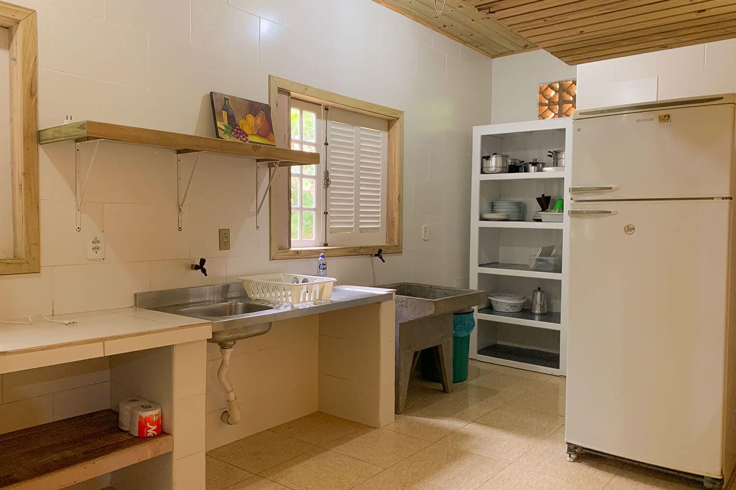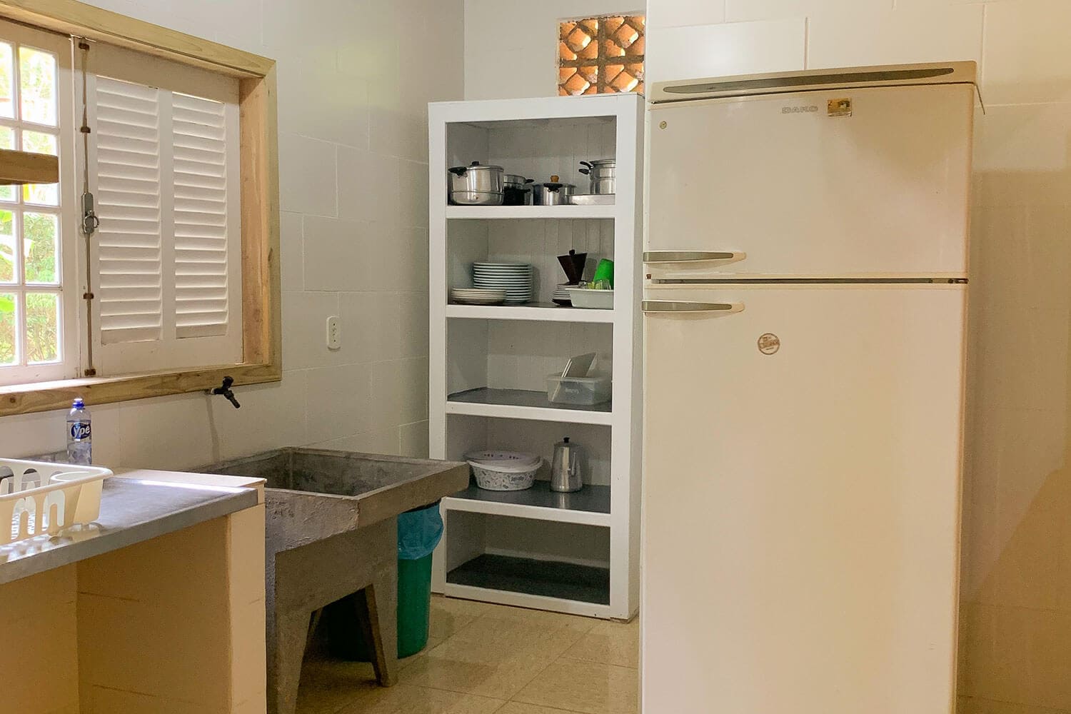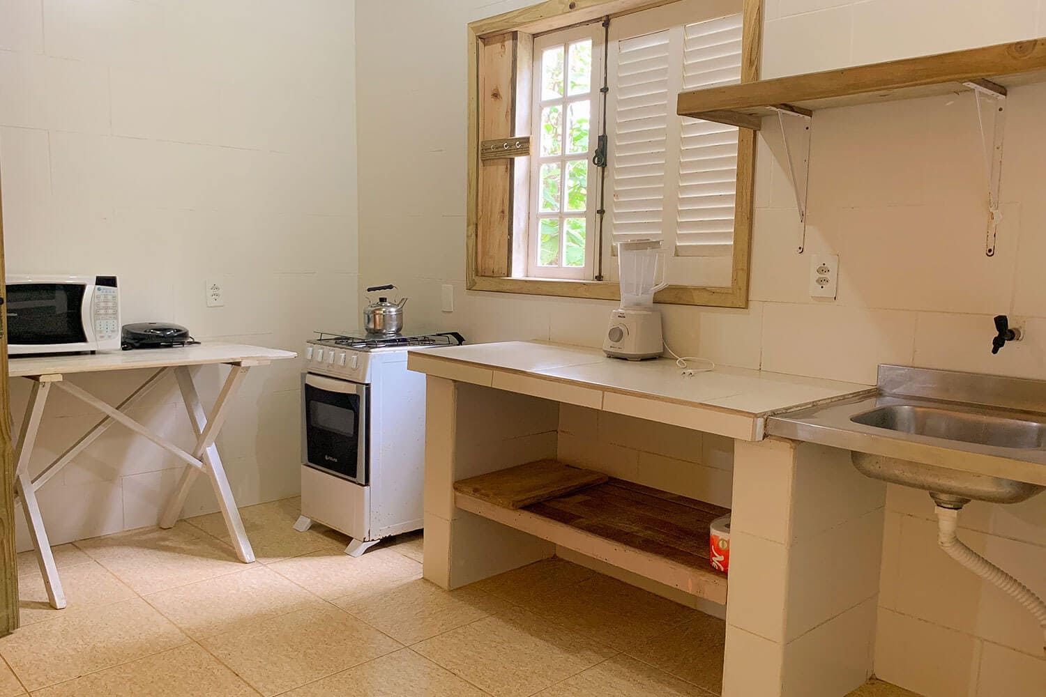 Banheiro privado, Cozinha completa com utensílios, Área com churrasqueira, 02 camas de casal