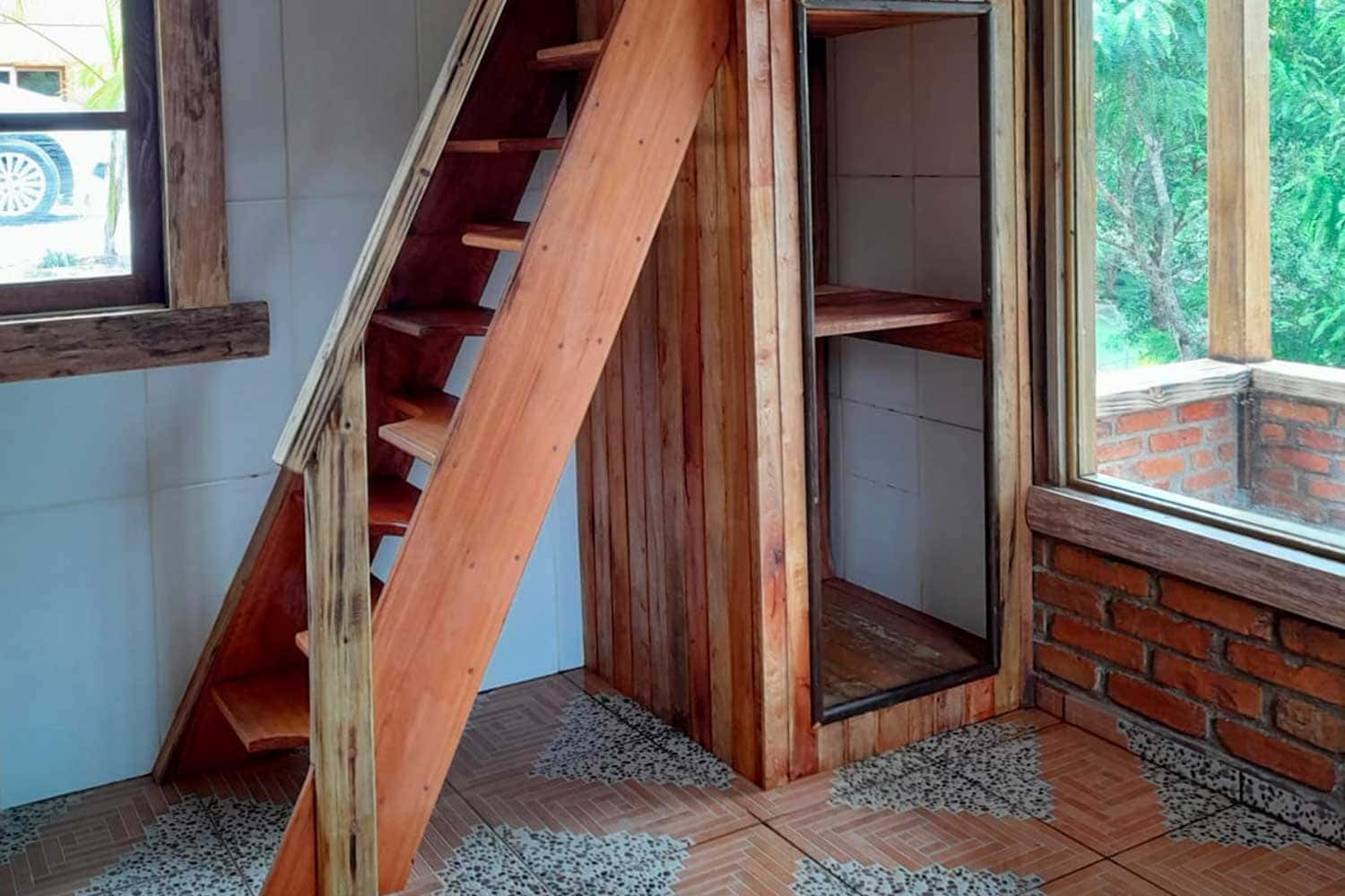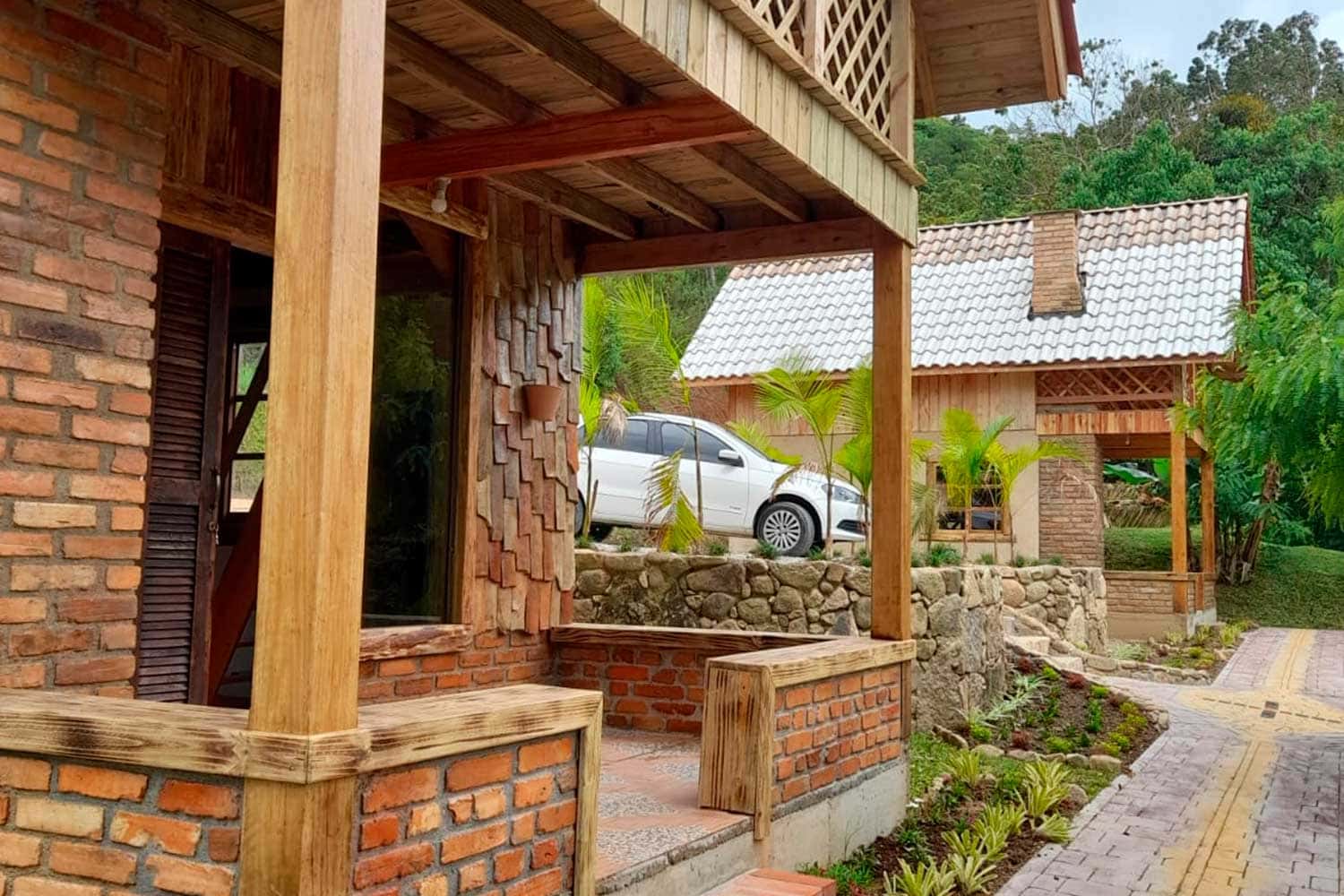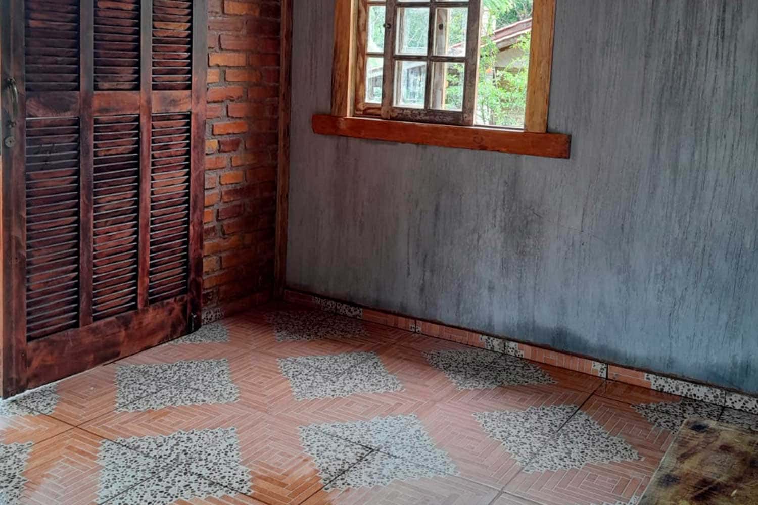01 colchão de casal, 01 colchão de solteiro, Banheiro privado, Quarto com lareira e varanda, Área com churrasqueira